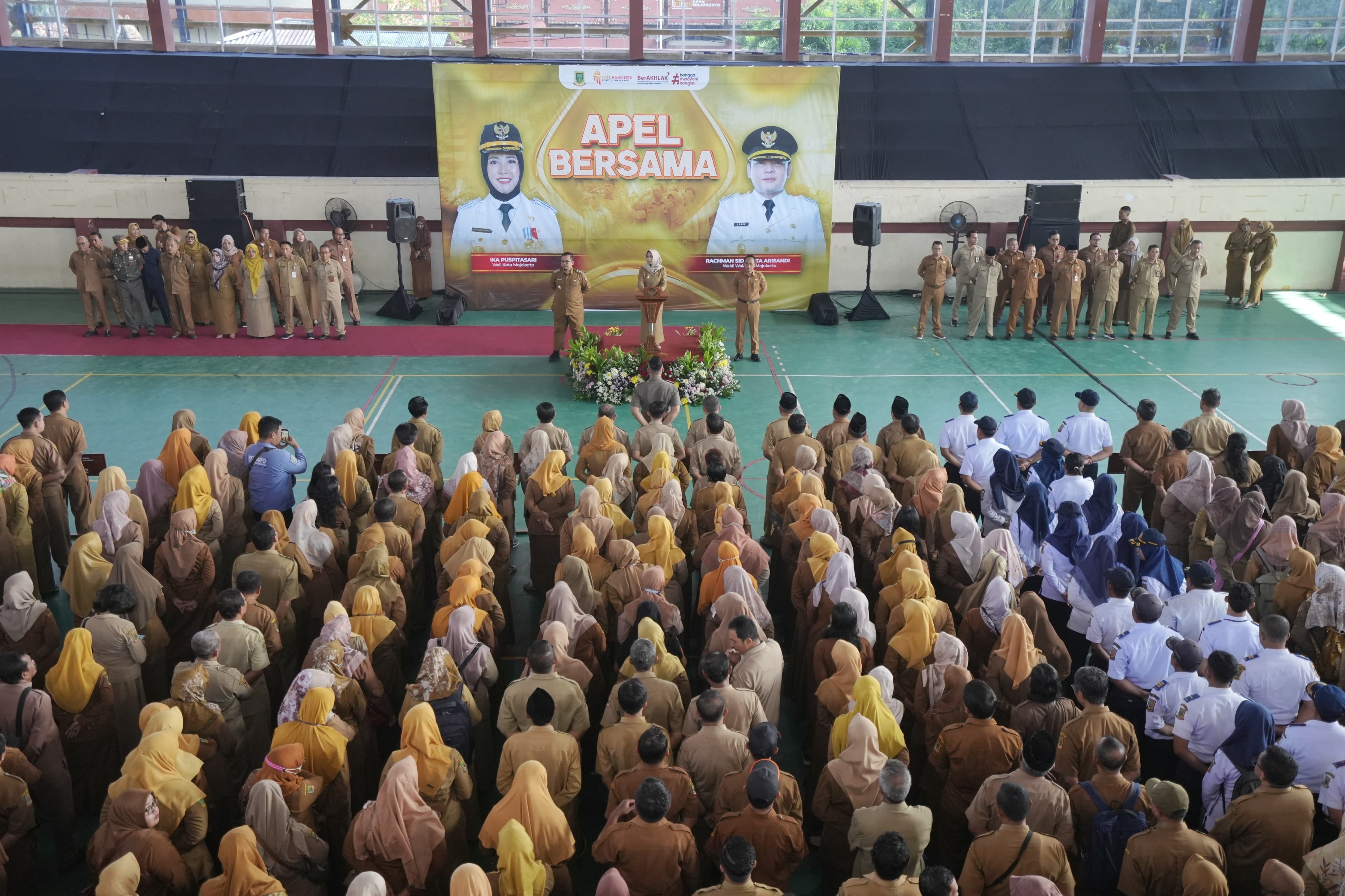 Apel perdana yang dipimpin Wali Kota Mojokerto Ika Puspitasari (Ning Ita), Senin, 3 Maret 2025. Foto: Hasan