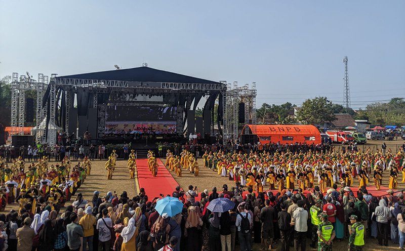 Masyarakat yang antusias menyaksikan penampilan penari di lapangan Kawiryan, Desa Pacing, Kecamatan Bangsal dalam acara Majafest 2023 untuk memecahkan Rekor MURI