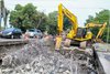 JEMBATAN AMBLES. Perbaikan jembatan Ngalik-Balun di Lamongan yang ambles, Rabu, 30 Maret 2022. Foto: Zuditya Saputra