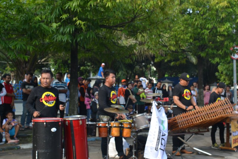 Alunan gebukan dan pukulan perkusi bernada lagu popular di tanah air, semakin menarik para pengunjung untuk merapat dalam aksi ini. Zufar Abdullah, koordinator aksi menuturkan, melihat kondisi warga Palestina yang saat ini kritis karena pemboikotan oleh zionis Israel, maka sudah seharusnya menyuarakan pembelaan untuk mereka.