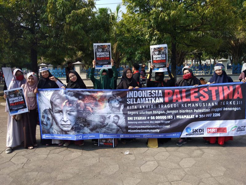 Aksi yang bertema Indonesia Selamatkan Palestina ini sebelumnya juga digelar oleh ACT-MRI di arena CFD Taman Bungkul, Jalan darmo Surabaya dan CFD Alun-alun Sidoarjo.