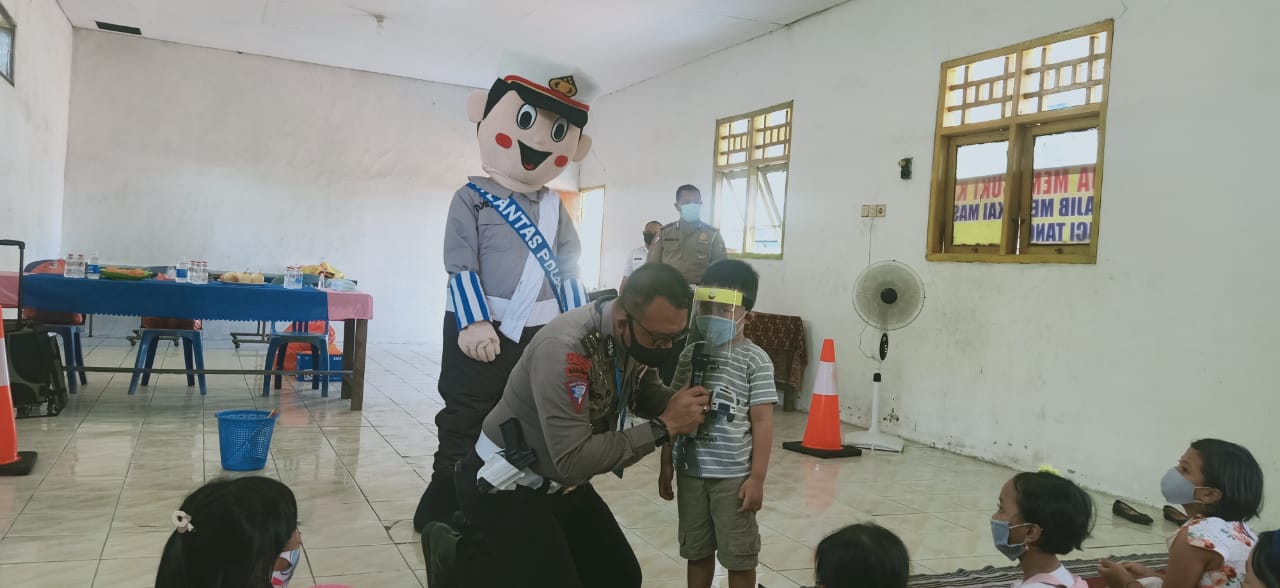 Kegiatan ini dilakukan Unit Pendidikan dan Rekayasa (Dikyasa) Satlantas Polres Mojokerto untuk mengurangi kejenuhan anak-anak selama masa pandemi Covid-19.