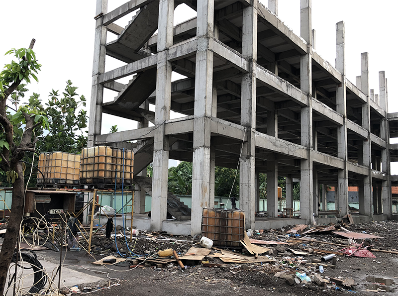 Jumlahnya diperkirakan lebih dari 40 pondasi yang terpasang. Tapi, sudah ada instalasi listrik, karena terlihat 8 MCB yang terpasang untuk mengaliri arus listik di bangunan tersebut.