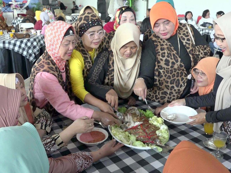 SAJIAN LAUT: Komunitas Sahabat Laut di Probolinggo menikmati olahan ikan Giant Trevally Tim. Foto: Zulkiflie.