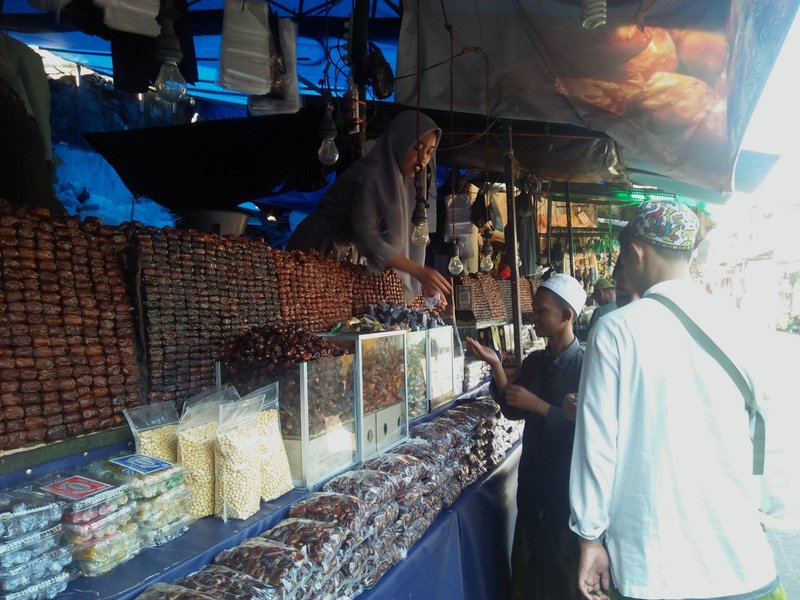 “Kami menyediakan banyak pilihan kurma, mulai dari Mesir, Madinah, yang murah dan mahal ada di sini,” kata pria asli Surabaya ini.