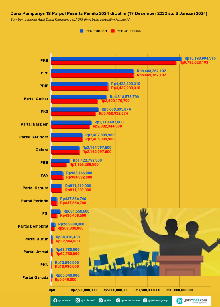 BACA: Parpol Mana yang Paling Banyak dan Sedikit Keluarkan Dana Kampanye di Jatim?
