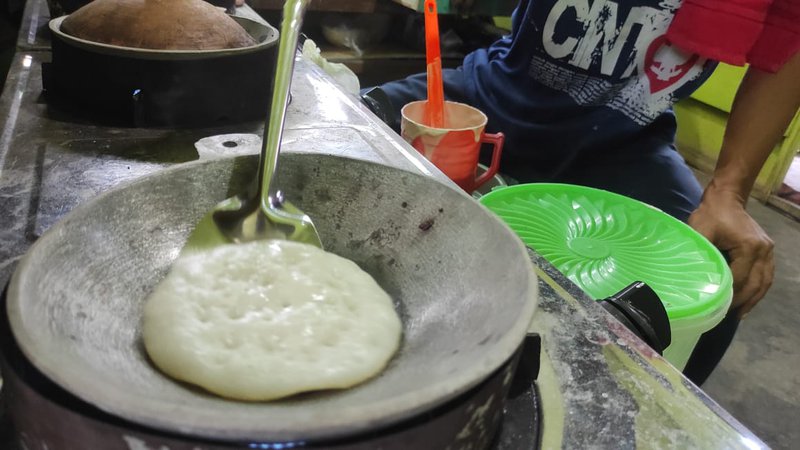 “Sengaja kalau puasa malah enggak kami bawa banyak, karena waktu berjualan juga lebih sedikit. Ada waktu untuk beribadah juga,” kata Sunadi sembari menuangkan adonan ke atas wajan yang terbuat dari tanah liat.