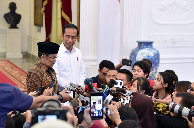 Pertemuan Jokowi dengan Habibie ini berlangsung di Ruang Jepara, Istana Merdeka sekitar kurang lebih satu jam.