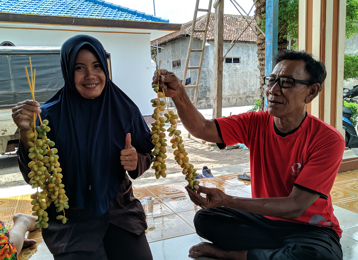 “Sudah mulai ramai sejak 4 harian ini, banyak pasangan dan ibu-ibu yang sedang progam hamil ke rumah untuk membeli dan mencicipi kurma muda,” kata Budi Jono, 14 Januari 2020.