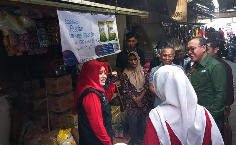 JATIMNET.COM, Mojokerto - Bupati Mojokerto, Ikfina Fahmawati, melakukan pemantauan penyaluran penjualan sembako khususnya beras melalui program Rumah Pangan Kita (RPK) di Pasar Raya Kecamatan Mojosari, Kabupaten Mojokerto, Sabtu 12 Agustus 2023 pagi.
