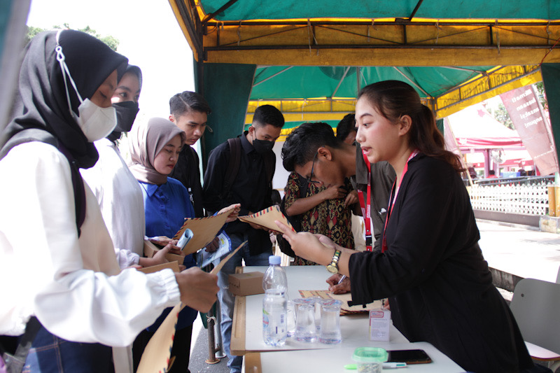 Para pencari kerja menyerbu stand menyampaikan surat lamaran