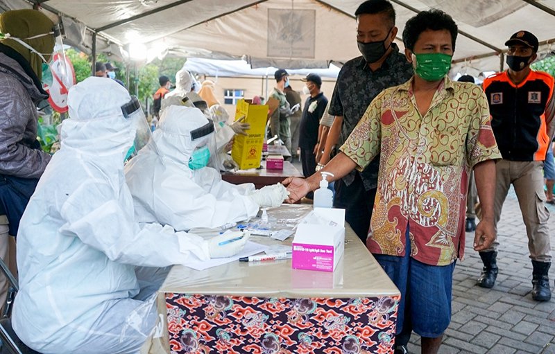 Tak hanya melakukan penertiban masker, seluruh pedagang beserta karyawan di pasar itu juga dilakukan rapid test massal oleh Dinas Kesehatan (Dinkes) Kota Surabaya. Hal ini untuk mengantisipasi tidak ada warga yang terpapar Covid-19.