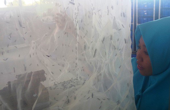 "Penetasan telur dilakukan di dalam laci. Setelah berusia 5 hari larva siap untuk pembesaran dan sudah bisa makan sampah," kata gadis berjilbab biru itu beberapa waktu lalu.