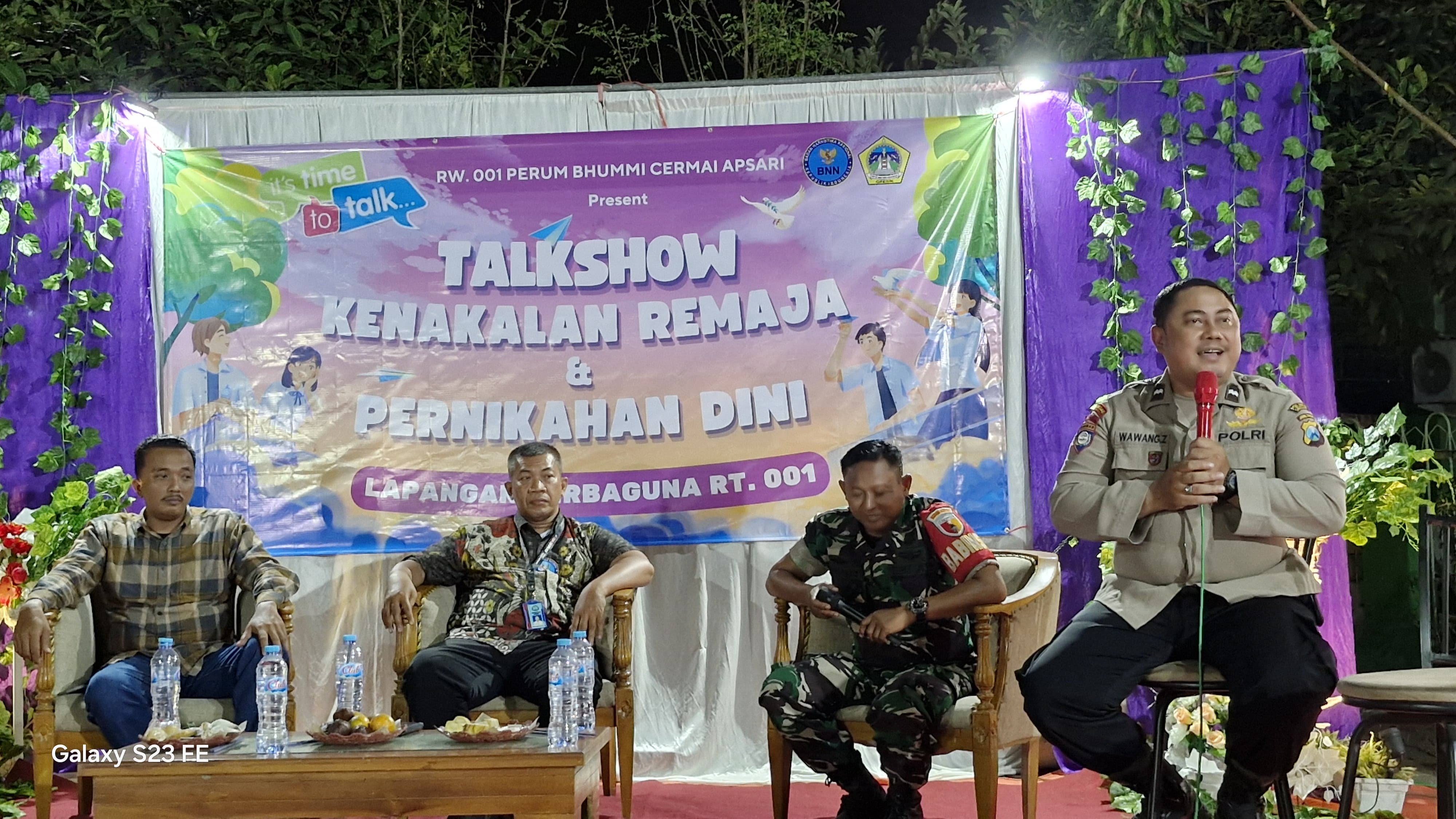 Suasana gayeng saat talk show yang diikuti mayoritas kaum muda mudi di Perumahan Bhumi Cermai Apsari, RT1 RW1 Desa Ngabetan, Kecamatan Cerme, Gresik, Sabtu malam, 21 September 2024. Foto: Agus Salim