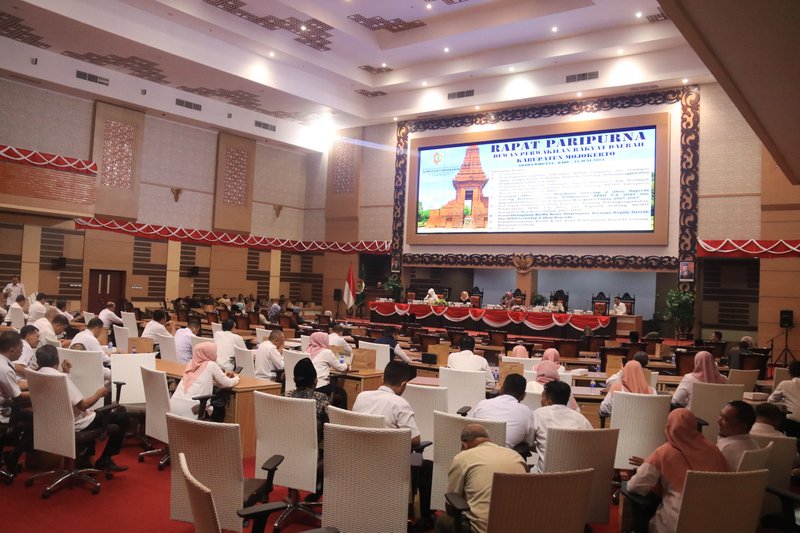 Sidang paripurna DPRD Kabupaten Mojokerto tentang penetapan Raperda Pertanggungjawaban APBD 2023 dan RPJPD Kabupaten Mojokerto 2025-2045, Kamis, 13 Juni 2024. Foto: Jatimnet
