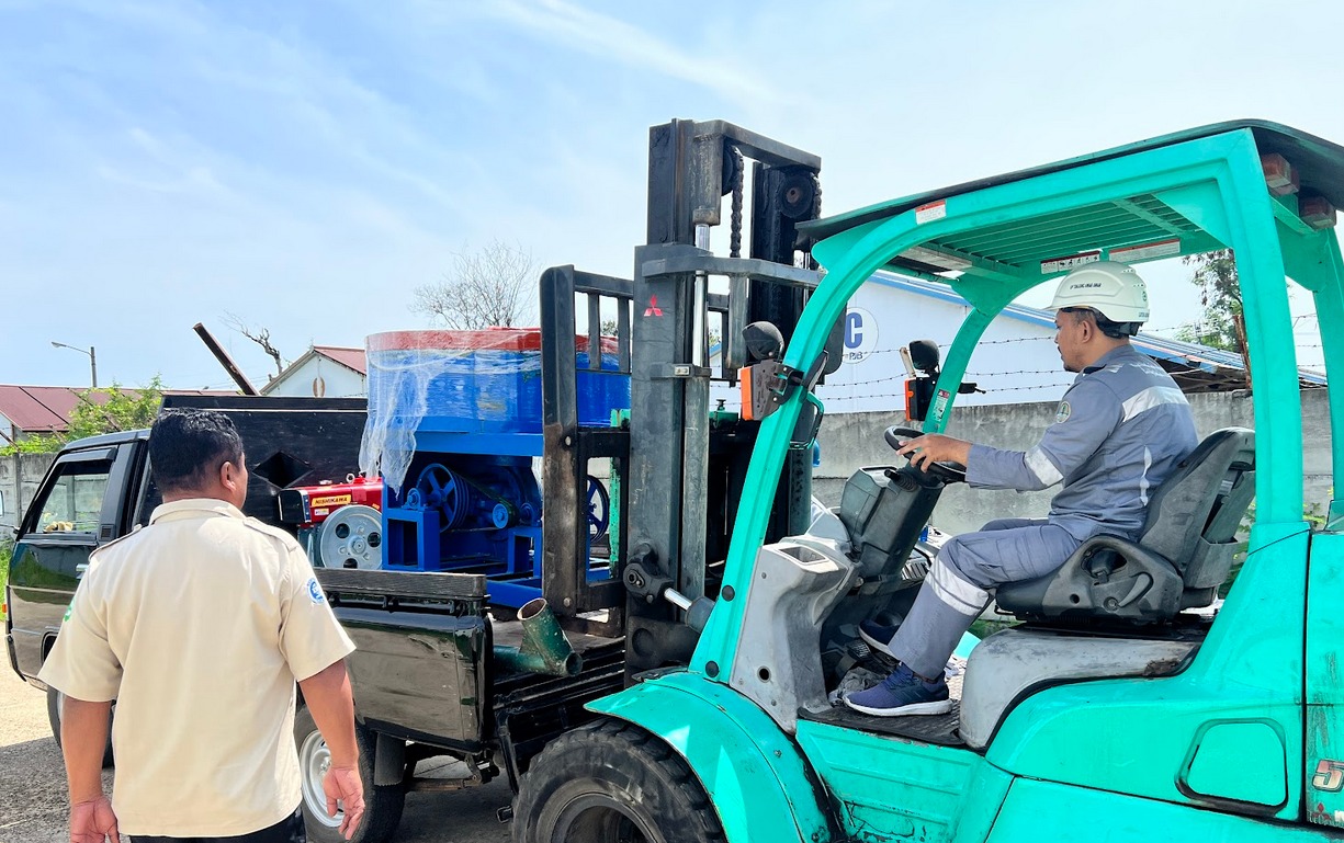 Melalui program SI DAFA, PLN Nusantara Power menyerahkan satu unit mesin mixer dan satu unit mesin pengayak kepada KUB Karya Berkah. Foto: PT PLN Nusantara Power UP Tanjung Awar-Awar
