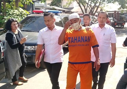 Selain memakai pakaian berwarna oranye bertuliskan Tahanan Polda Jatim, Samsul yang mengenakan peci bundar dan menutup mulutnya dengan masker lebih banyak diam ketika ditanya wartawan.