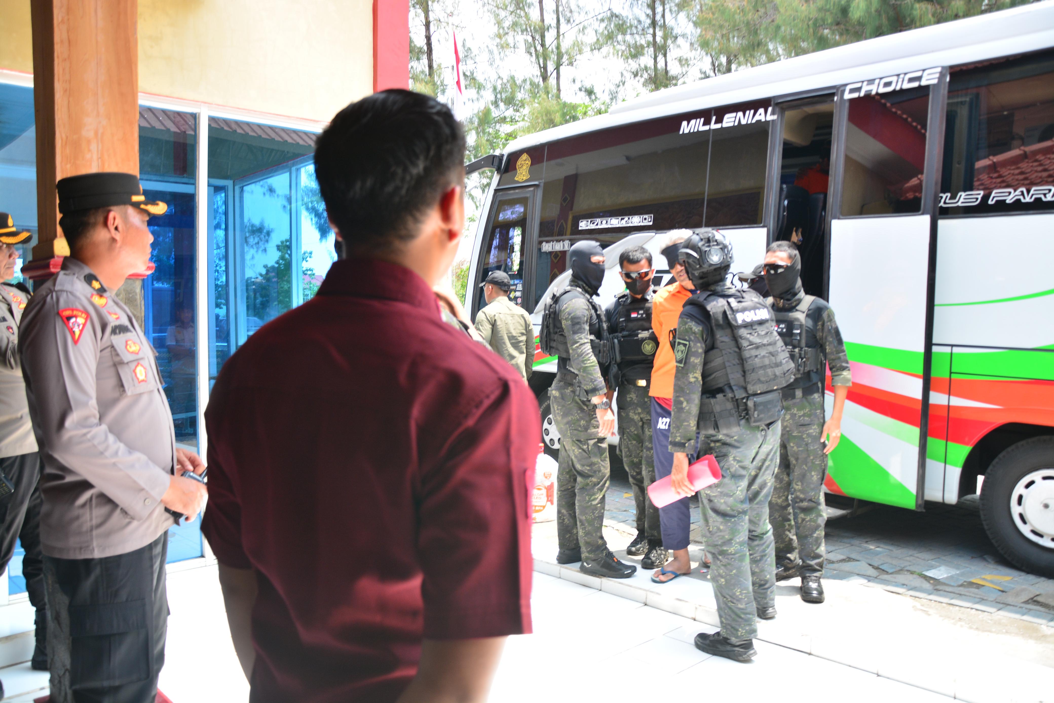 Selain Densus 88, Petugas Rutan Kelas I Depok, anggota Polres Lamongan, dan Denintel Lamongan 0812/Lamongan juga turut serta mengawal.