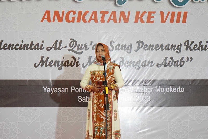 Wali Kota Mojokerto Ika Puspitasari saat menghadiri wisuda tahfidz Juz 30 Angkatan VIII Yayasan Al Azhar, Sabtu 18 Februari 2023 di Hall Lantai 4 MPP Kota Mojokerto. Foto: Diskominfo Kota Mojokerto