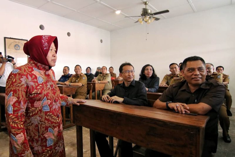 RISMA: Wali Kota Surabaya Tri Rismaharini bersama jajaran pemerintah kota berada di ruang kelas Museum Pendidikan Genteng Kali Surabaya