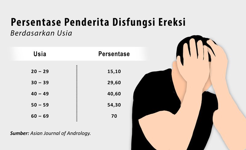 Ia mengutip data Asian Journal of Andrology, prevalensi disfungsi ereksi di usia 20 hingga 29 tahun cukup mengejutkan, yakni mencapai 15,10 persen. Padahal untuk usia 30-39 penderita disfungsi ereksi mencapai 29,60 persen.