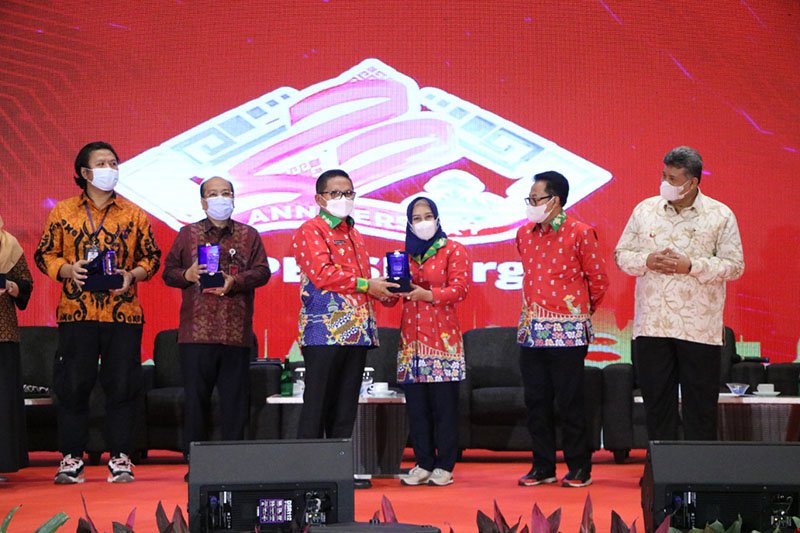Wali Kota Mojokerto Ika Puspitasari saat menerima penghargaan dari Menteri Dalam Negeri Tito Karnavian. Foto: Diskominfo Kota Mojokerto