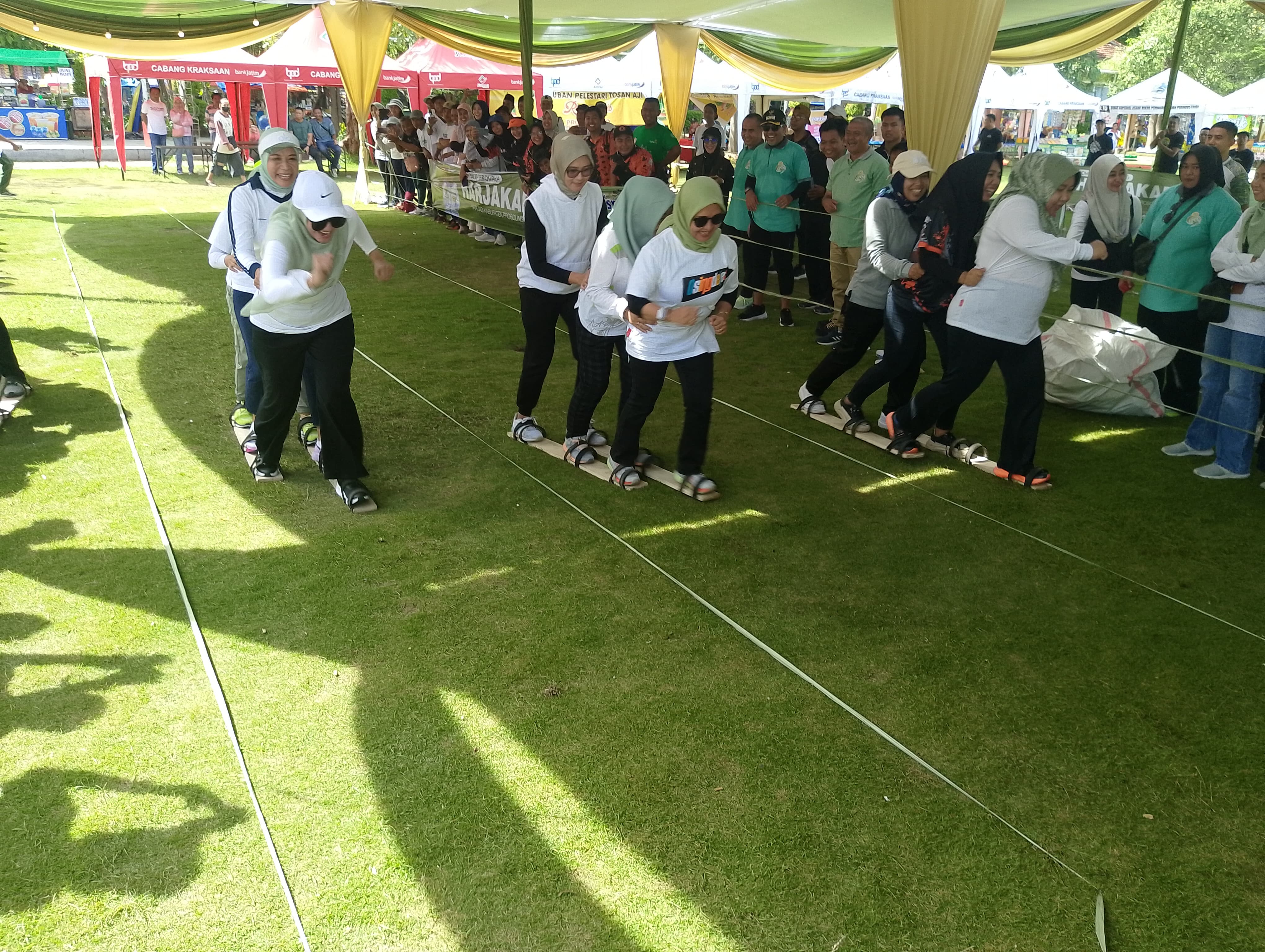 Mulai dari tarik tambang, kelompen raksasa, hingga balap karung dan egrang. Seluruh peserta tampak antusias mengikuti perlombaan.
