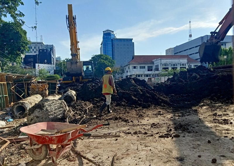Selanjutnya pemkot menggali tanah sedalam tiga meter untuk pemasangan scaffolding (cetakan beton). “Scaffolding ini untuk konstruksi atapnya atau cor balok dan plat untuk lantai jalan,” katanya.