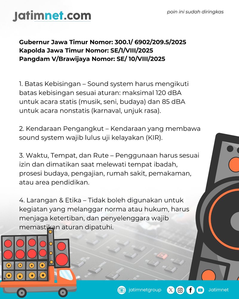Infografis aturan penggunaan sound system/sound horeg di Jawa Timur. Dok: Jatimnet