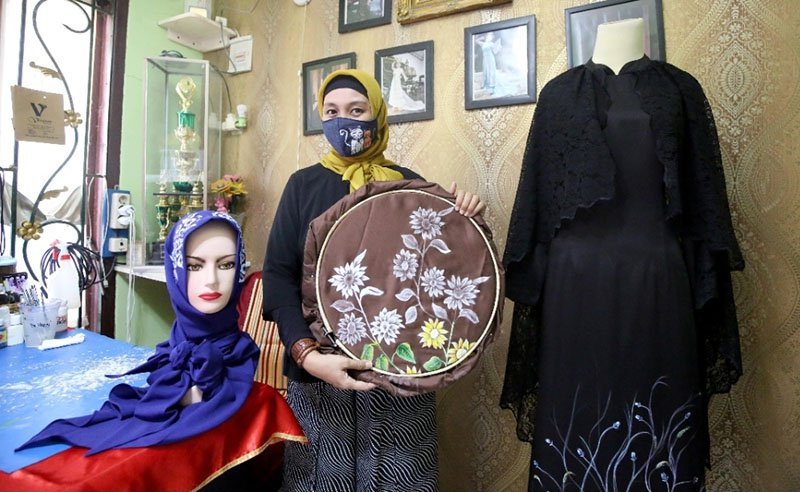 “Alhamdulillah, menjelang lebaran banjir pembeli, yang paling banyak terjual jilbab lukis instan dan masker. Hampir setiap hari kami melakukan pengiriman di dalam maupun luar kota,” kata Catur Andriani saat ditemui di rumahnya, Selasa 11 Mei 2021.