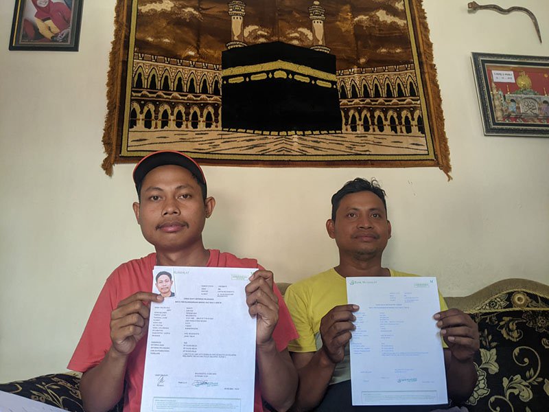 Muhammad Syamsudiyan (34) dan adiknya Muhammad Sahril Taufiq (28), saat menunjukan dokumen dari Kemenag sebagai Calon Jamaah Haji (CJH) tahun 2023.