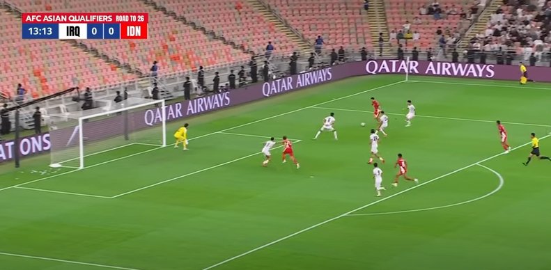Memasuki babak kedua, Irak merespons dengan memasukkan mantan pemain Manchester United (MU), Zidane Iqbal.