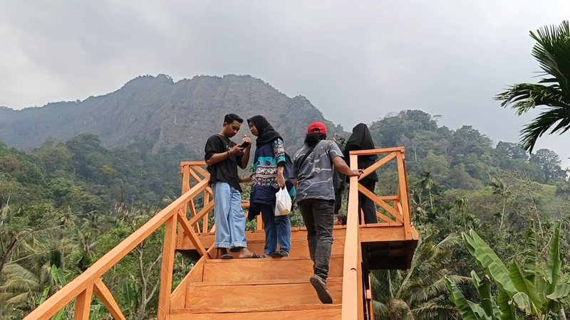 Selain panorama lembah dan sungai, banyak spot foto alami yang digemari pengunjung, mulai dari bebatuan besar hingga jembatan kayu sederhana.