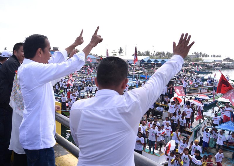 Sebelum menghadiri kampanye terbuka, Jokowi juga sempat menyapa nelayan di acara Festival Bakar Ikan yang diselenggarakan di Jembatan Manggar, Balikpapan, Kalimantan Timur.