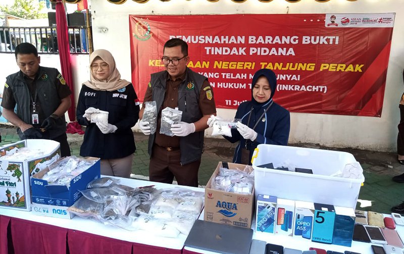 Kepala Kejari Tanjung Perak Surabaya, Aji Kalbu Pribadi melalui Kasi Intelijen Jemmy Sandra menyampaikan total keseluruhan barang bukti yang dimusnahkan tersebut dari 265 perkara tindak pidana narkotika dan 142 tindak pidana umum.