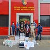 DOKTER 'PALSU'. Tersangka dokter 'palsu', Catur Purwanto (kaos hitam tengah depan), bersama barang bukti obat dan peralatan kesehatan di Mapolresta Mojokerto, Selasa, 3 Agustus 2021. Foto: Polresta Mojokerto