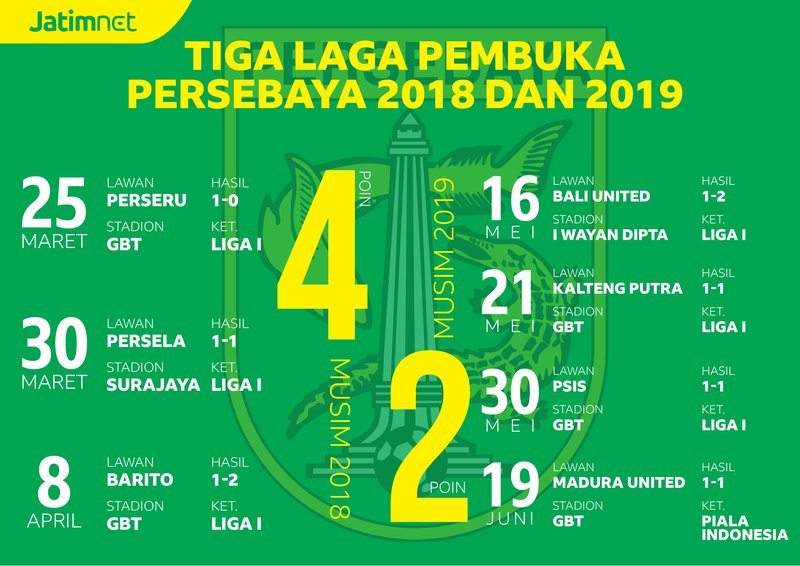 Total empat laga yang sudah dijalani Persebaya belum satupun kemenangan yang bisa diraih. Hasil ini menunjukkan kemunduran tim polesan Djajang Nurjaman pada laga awal musim ini.