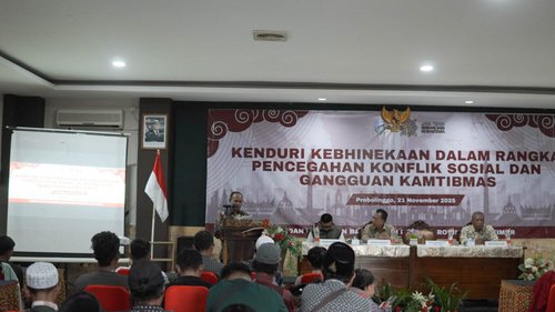 JATIMNET.COM, Probolinggo – Pemerintah Provinsi Jawa Timur terus memperkuat kerukunan masyarakat dan mencegah potensi konflik sosial melalui berbagai program penguatan toleransi. Salah satunya terlihat dalam kegiatan Kenduri Kebhinekaan bertema “Penguatan Kebhinekaan di Lingkungan Masyarakat” yang digelar di Hotel Kampoeng Kita, Desa Condong, Kecamatan Gading, Kabupaten Probolinggo, Jumat siang, 22 November 2025.
