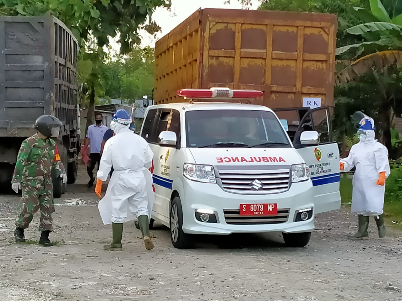 DIJEMPUT. Pasangan suami istri di Kec. Jetis, Kab. Mojokerto dijemput petugas karena positif Covid-19, Jumat, 24 April 2020. Foto: Istimewa