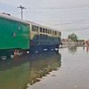 Satu rangkaian kereta api sedang menlintas di jalur yang tergenang air di antara Stasiun Pekalongan-Sragi, Kabupaten Pekalongan, Jawa Tengah, Satu, 17 Januari 2026. Foto: PT KAI