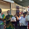 Ketua Partai Demokrat Surabaya, Lucy Kurniasari (baju batik) saat ikut membagikan paket bantuan Badan Nasional Penanggulangan Bencana (BNPB)