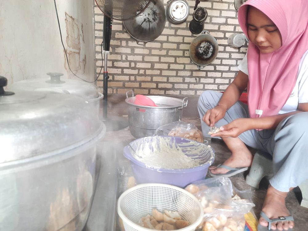 Proses produksi pentol, cireng, sempol dan berbagai olahan jajan di kediaman Siti Alfathonah di Desa Temandang, Kecamatan Merakurak, Kabupaten Tuban.