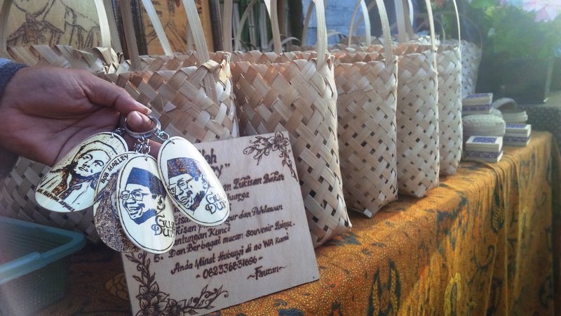 Ada gantungan kunci terbuat dari bambu yang dilukisi wajah berbagai tokoh. Ia menjual gantungan kunci itu antara Rp 10 hingga Rp 15 ribu per buah. Ada wajah Presiden Ketiga RI Abdurrahman Wahid atau Gus Dur, para kiai besar, hingga Bob Marley di gantungan kunci yang dibikinnya itu.