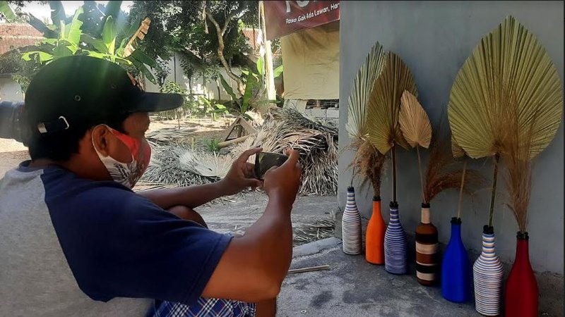 Lalu dia mulai mendatangi rimbunan pohon palem sadeng di salah satu sudut desanya dan berhasil mendapatkan daunnya secara gratis untuk uji coba. Langkah berikutnya dia melakukan riset produk lanjutan secara daring termasuk terkait kata kunci agar produknya mudah ditemukan pembeli di pasar digital atau marketplace.