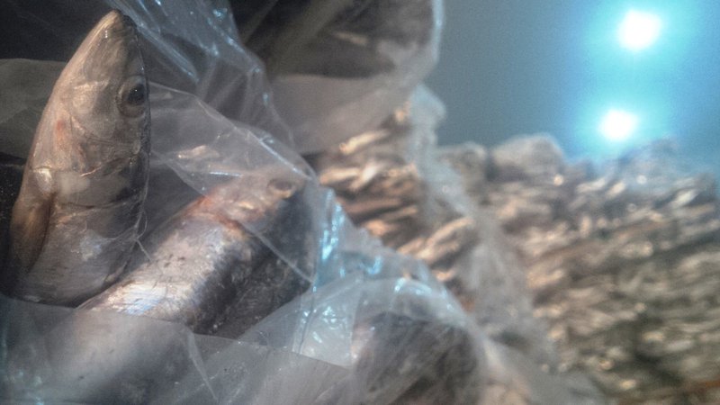 LEMURU.Tumpukan ikan lemuru beku asal Yaman yang disimpan dalam gudang berpendingin CV Pasific Harvest, Muncar, Banyuwangi. Setelah tangkapan lemuru lokal berkurang mulai tahun 2009. Foto: Ahmad Suudi