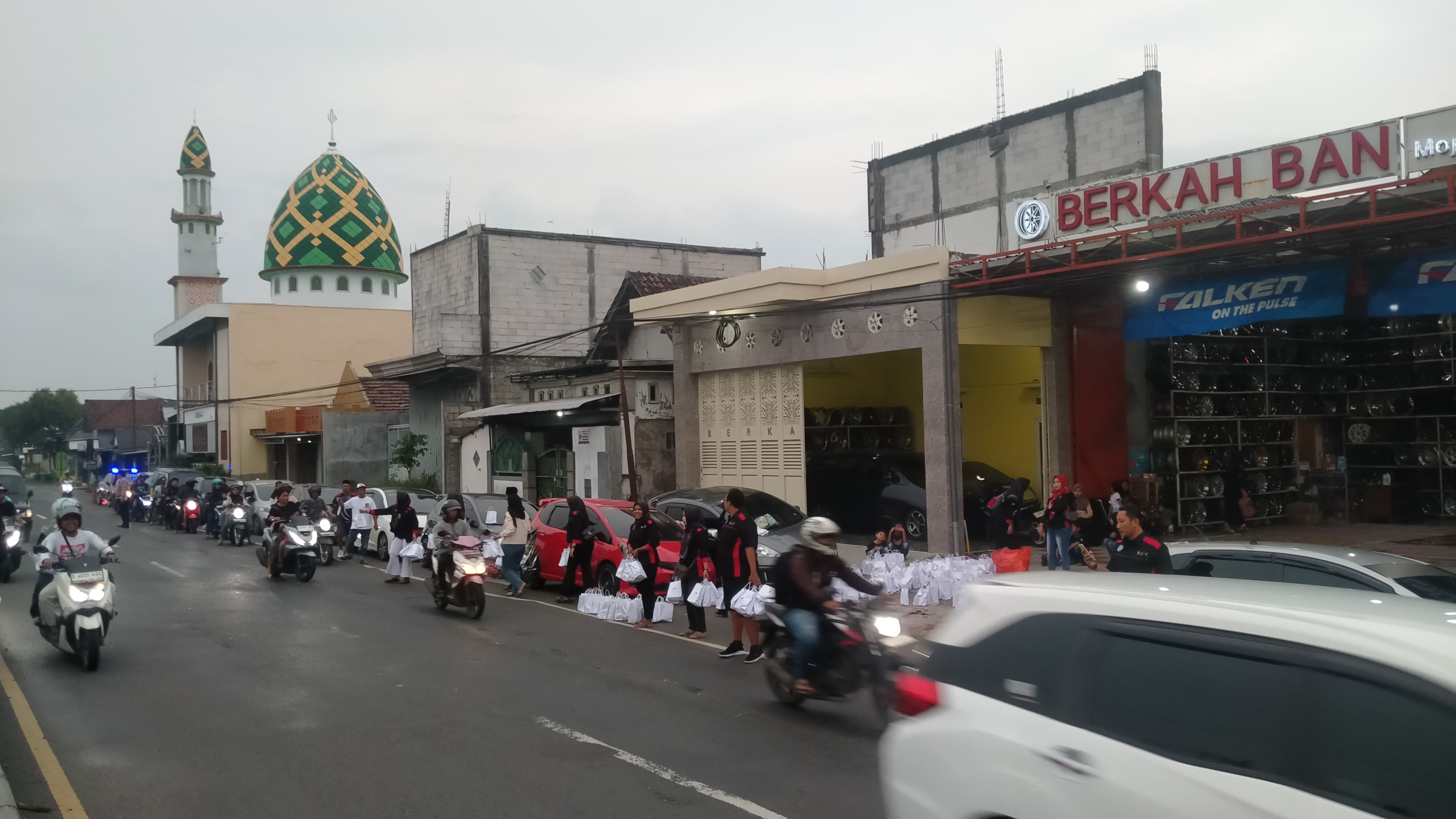 Sebanyak 1.000 takjil dibagikan Honda Jazz Owners Community (HJOC) JATIM Chapter Mojokerto kepada para pengguna jalan di depan Berkah Ban, Mojoagung, Jombang, Minggu, 23 Maret 2025. Foto: Dini