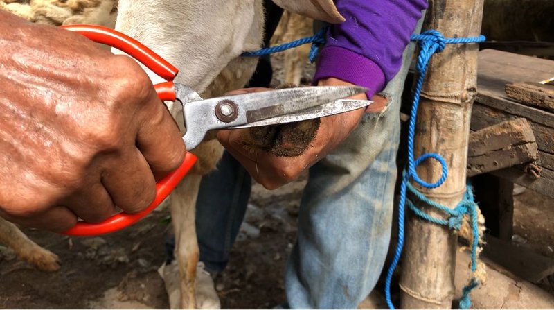 Tidak hanya merapikan bulu kambing, ia juga mengecek kondisi kuku hewan berkaki empat tersebut. Dalam sehari, ia mampu mengerjakan puluhan kambing milik pedagang yang ada di pasar hewan maupun di kandang.