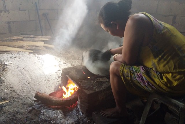 Di dekat tungku, terlihat Tumina (43) atau Yuk Tum sedang mengaduk kopi yang digoreng dengan menggunakan wadah kuali yang terbuat dari tanah liat. Tangannya yang terbungkus sarung tangan cekatan mengaduk kopi yang sudah berwarna kehitaman.