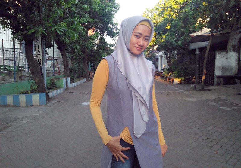 HIJAB PARIS. Atmi Nugroho mengenakan model hijab Paris. Model hijab ini bisa menjad andalan ketika lebaran nanti karena harganya murah, simpel, dan bisa tampil trendy. Foto: Ist