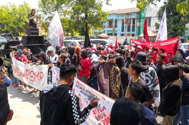 "Kkita di sini mempertanyakan sejauh mana pembelaan manajemen atas sanksi bagi PSMP. Soalnya sudah hampir tiga tahun lamanya manajemen tak melakukan apapun terkait nasib tim kesayangan kami," jelasnya pada awak media, saat berorasi di Jalan Jayanegara.